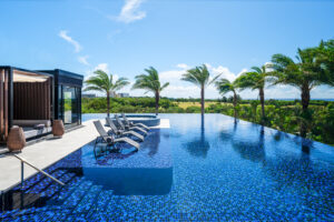 美しい海と水平線を望むサウナルーム、ジャグジーや、インフィニティプールも